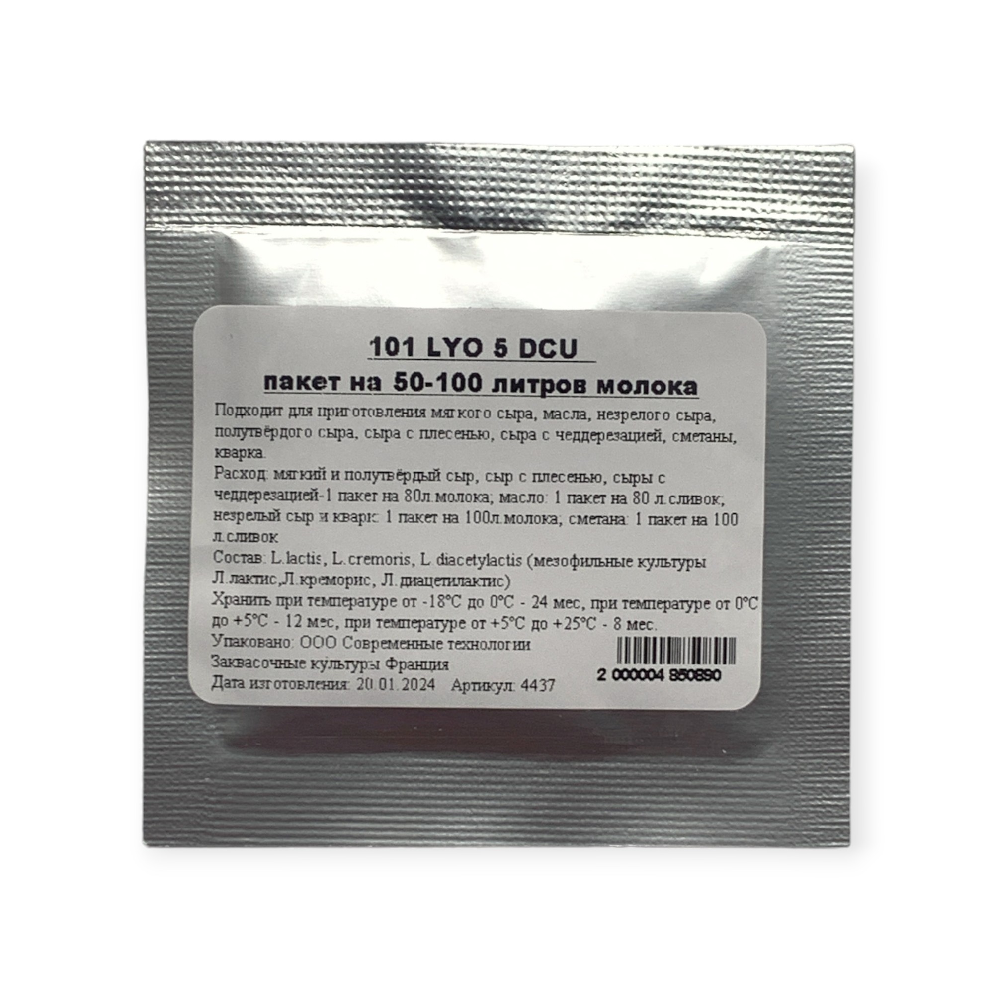 MM 101 LYO 5 DCU мезофильные культуры на 100 литров молока. Артикул: 4437
